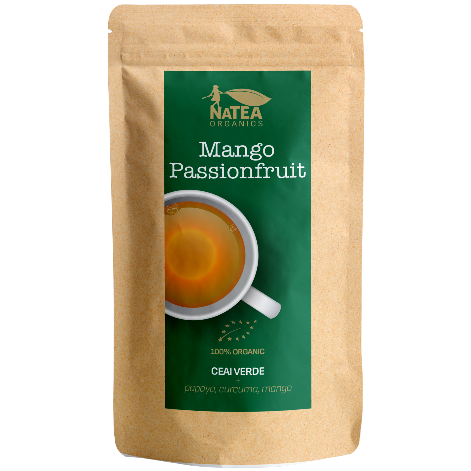 Ingrediente : ceai verde Sencha (origine China), papaya, curcuma, bucati de mango (5%), ghimbir confiat (ghimbir, zahar brut), fructul pasiunii (3%), aroma naturala de fructul pasiunii, mango si lamaie, spirulina